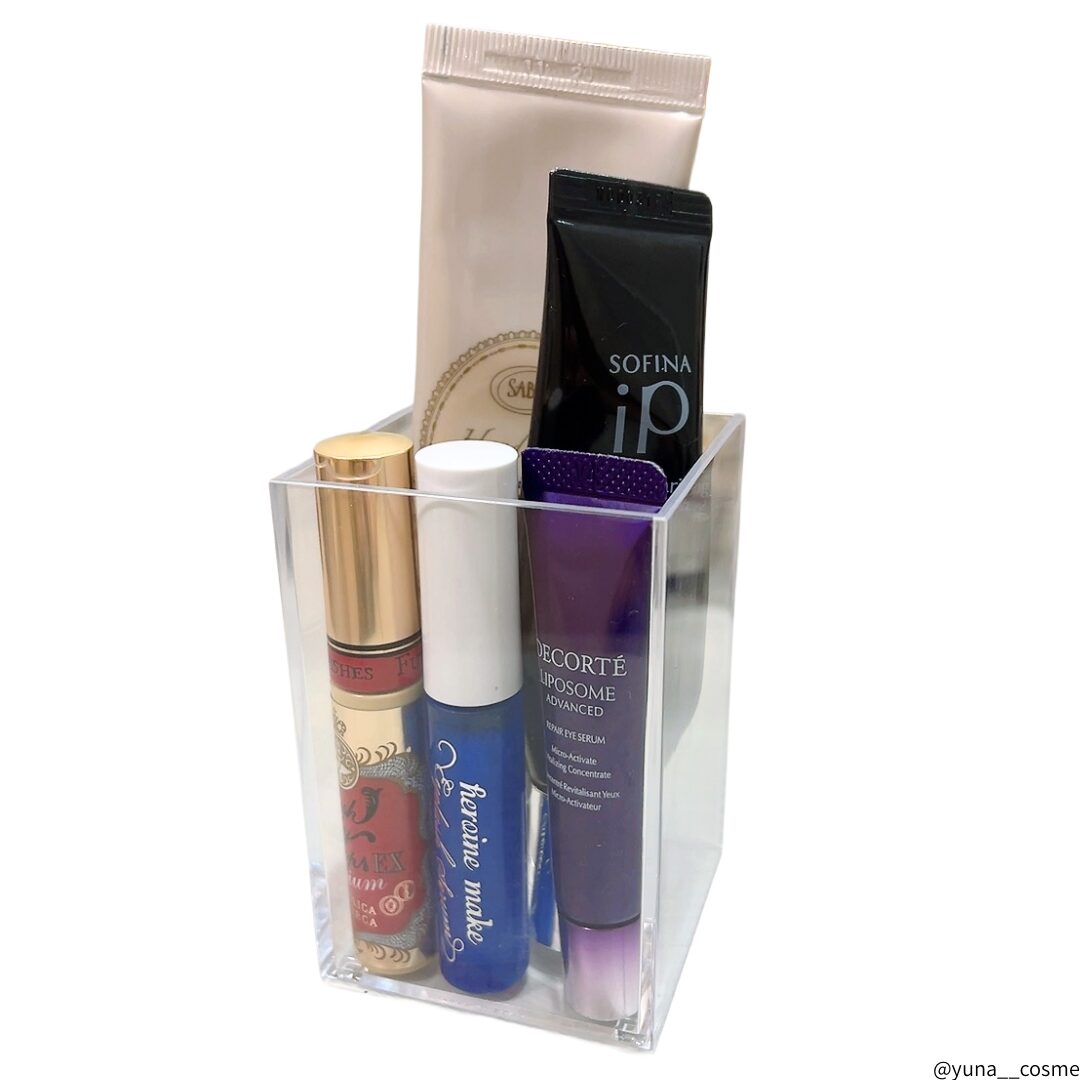 現在はまつげ美容液やアイクリームなどを含めた合計5点を収納していますが、これだけ入れてもまだ少し余裕があります。